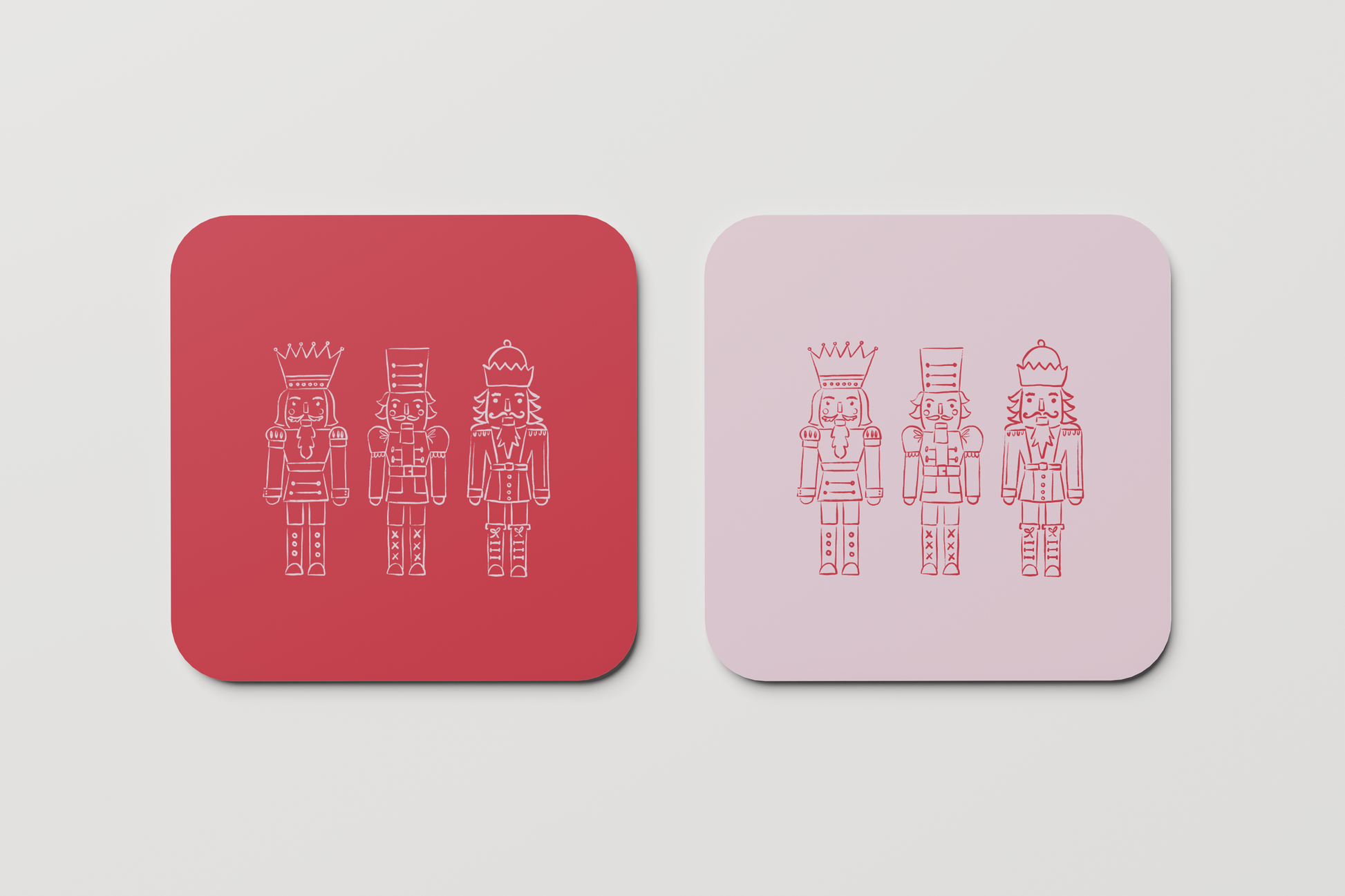 Bright, fun, and full of holiday charm! Our Nutcracker Trio Coasters in pink and red add a joyful pop to any table or bar cart.